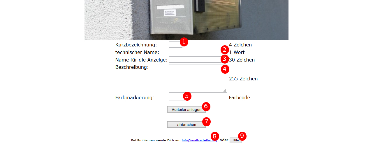 - Der Name des Verteilers, der auf der Seite angezeigt wird, ist in das Feld Name für die Anzeige einzugeben. Es sind maximal 30 Zeichen