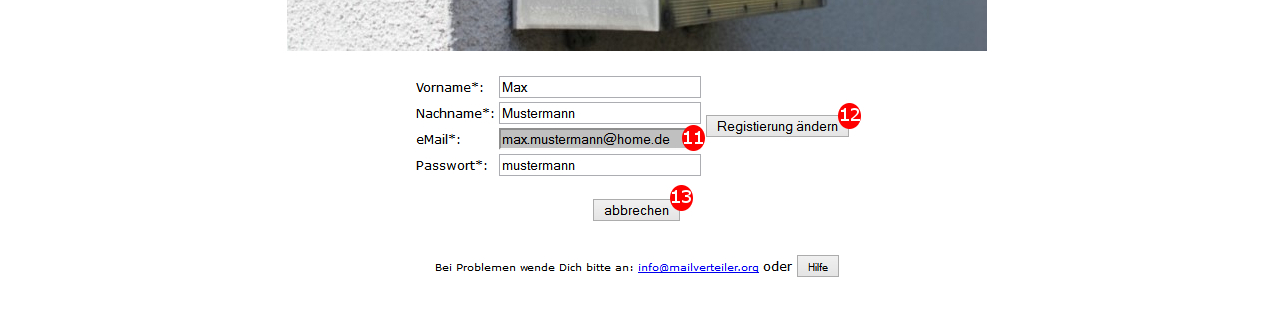 Dich erneut zu registrieren. Vielleicht nutzt Du die am unteren Ende der Seite angegebene eMail (siehe 10), um mich zu kontaktieren. Oder